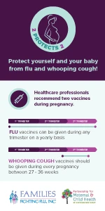 In collaboration with Families Fighting Flu, the 2 Protect 2 campaign aims to raise awareness about the importance of the flu and whooping cough vaccinations during pregnancy.
